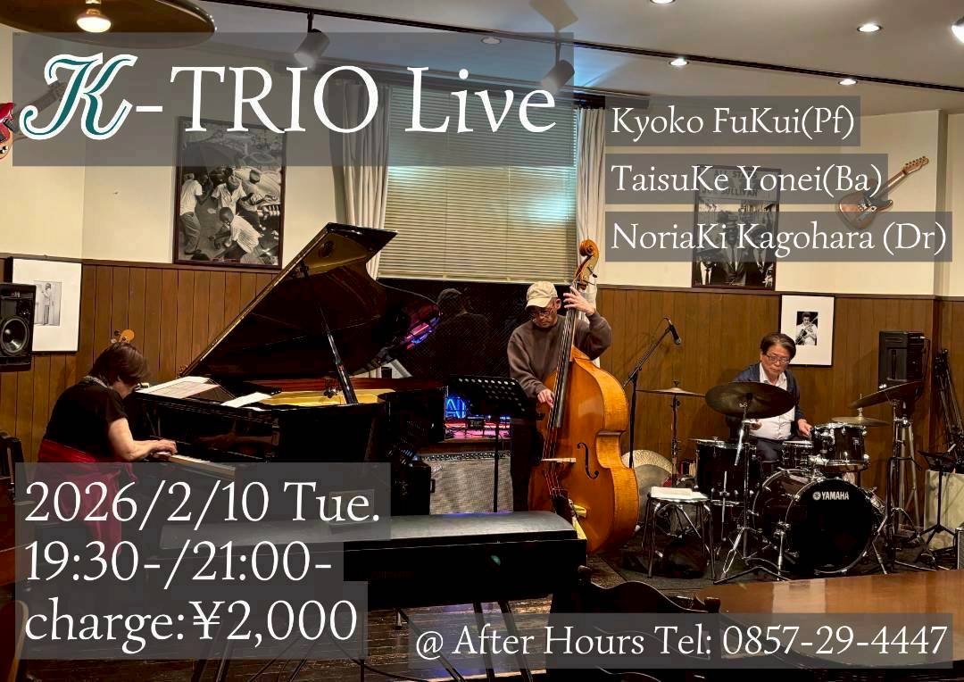 7:30 PM - 10:00 PM K-TRIO Live !! 2026年2月10日 @ 7:30 PM - 10:00 PM JST K-TRIO Live !! K-Trio live ジャズといえば、と言ったスタンダードナンバーを中心に、リーダー楮原さんの演奏曲紹介を含 […] ¥2000
